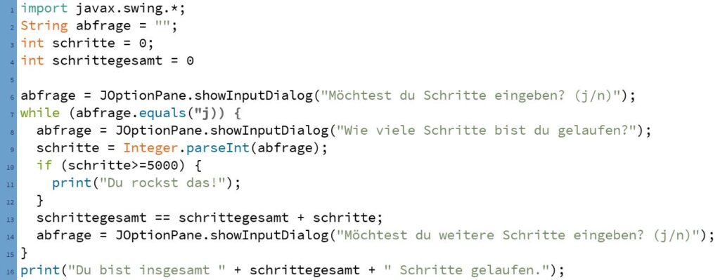 PROGROB braucht fähige Leute, die Fehler finden und korrigieren können. Hier ist das Programm, welches einer der Mitarbeiter bereits erstellt hat, aber leider funktioniert es noch nicht. Finde die Zeilen, wo die Fehler sind.