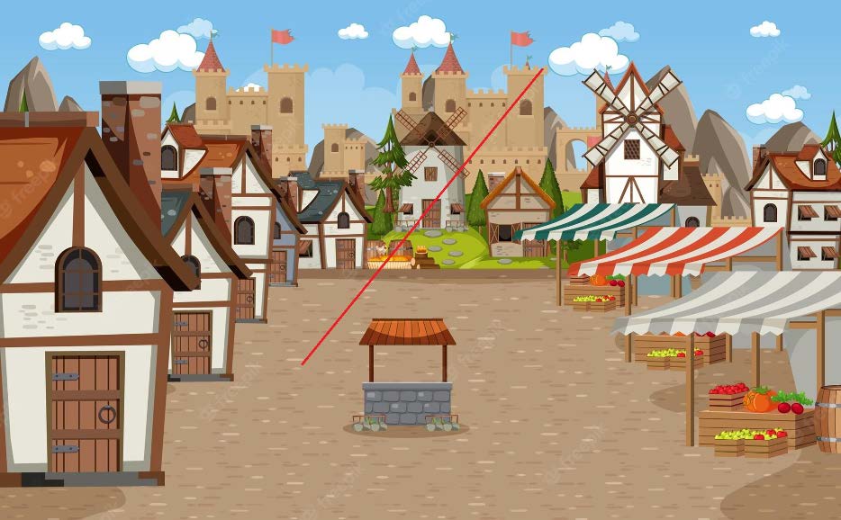 1. Die Person auf dem Dorfplatz hat noch eine weitere Person auf der Burg, mit der sie kommunizieren möchte.