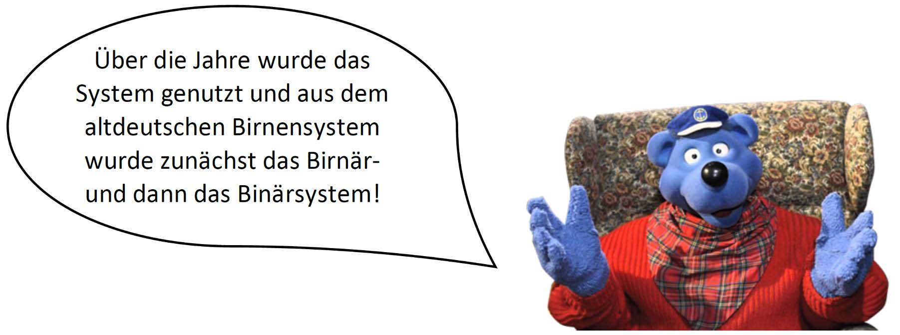 Naja, ganz so war es nicht. Aber das Zahlensystem, das du gerade kennengelernt hast, heißt tatsächlich Binär- oder auch Dualsystem. Der Name stammt aber daher, dass nur zwei Ziffern (0 und 1) verwendet werden und nicht wie in unserem gewohnten Zahlsystem zehn (0, 1, 2, 3, 4, 5, 6, 7, 8 und 9). Unser gewohntes Zahlensystem heißt Dezimalsystem.