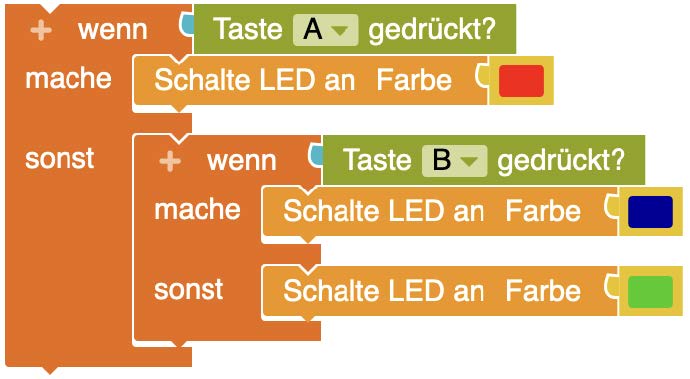 Da der Computer aber allein nicht in der Lage ist, „spontan“ auf eine Situation zu reagieren, kann eine bedingte Anweisung oder Entscheidungen genutzt werden. Durch diese kann schon während der Programmierung festgelegt werden, was beim Eintreten eines bestimmten Falles getan werden soll. Hierzu werden die folgenden Blöcke genutzt: